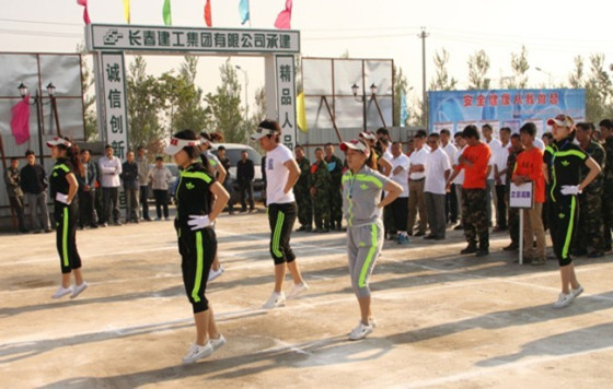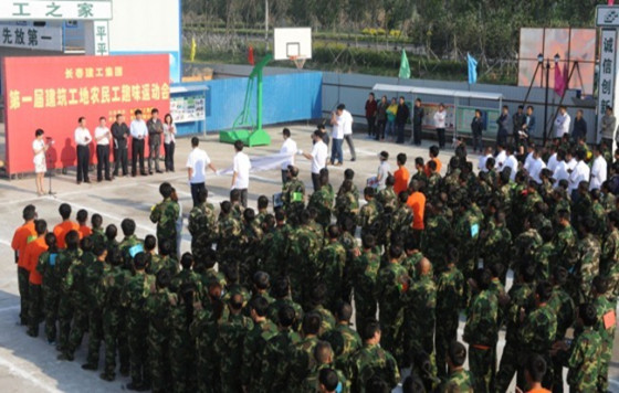 建筑工地农民工趣味运动会是长春建工集团“圆梦农民工”系列行动的主题活动之一,是为农民工量身订做和精心打造的文体运动,旨在丰富农民工业余生活,提高农民工文化素养和身体素质。这次运动会设有团体操、跳绳、踢毽、投篮、夫妻三足行、呼啦圈、象棋、军旗、跳棋等15个比赛项目,每个项目都设置了一二三等奖,而且分别准备了经济实用的奖品。
