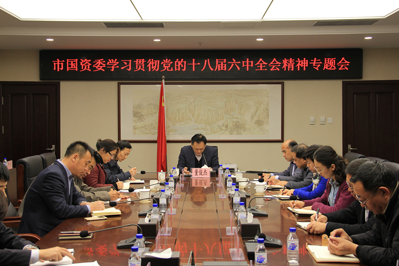 11月1日,市国资委召开党委(扩大)会议,学习传达党的十八届六中全会精神和市委市政府贯彻落实全会精神的部署要求,研究国资系统学习宣传贯彻工作。国资委主任、党委书记董俊杰主持会议,党委班子成员、产权中心负责人、机关中层领导干部参加了会议。