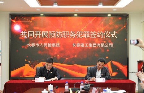 近日,市检察院与长春建工集团开展检企共建活动,并举行“共同开展预防职务犯罪”签约仪式。市检察院副检察长胡金刚及相关处室负责人,长春建工集团董事长王永君、集团班子其他成员、长春日报、长春晚报、长春电视台等媒体出席签约仪式。