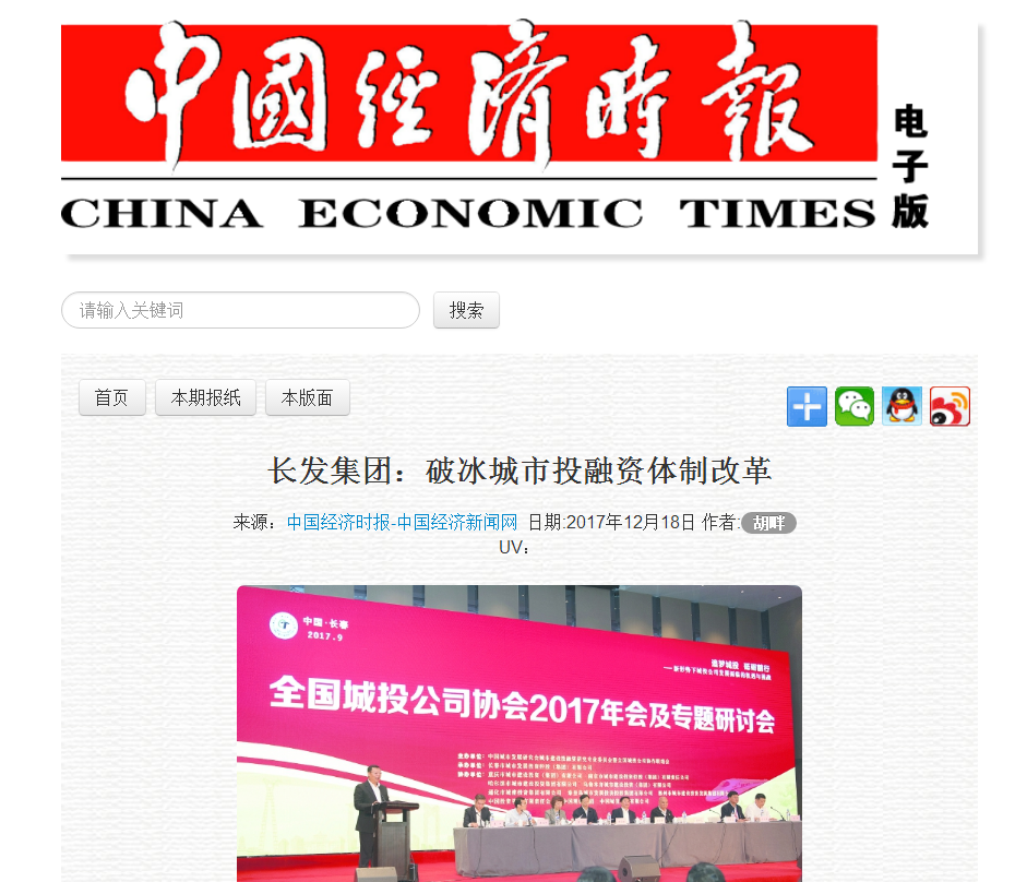 中国经济时报专题报道 长发集团:破冰城市投融资体制改革