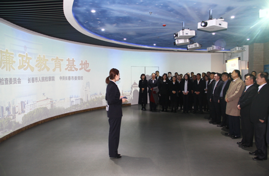 在廉政教育基地展示馆内,丰富多样的廉政视频、腐败案例、忏悔录等廉政教育素材,讲解员深入浅出的讲解,图文并茂的展示板,真实生动的再现了历代贪腐官员的丑恶嘴脸。记录片《利剑》深刻剖析了长春市一批党员领导干部腐化堕落的心理动机和犯罪轨迹,以案析理、以案说纪、以案说法,震撼心灵。