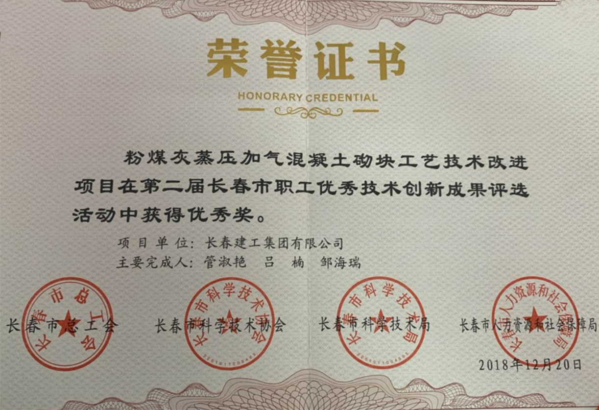 近日,建工集团长天基业建材有限公司“粉煤灰蒸压加气混凝土砌块工艺技术改进项目”在第二届长春市职工优秀技术创新成果评选活动中获得优秀奖。此项创新成果改进了蒸压加气混凝土砌块的工艺,减少了蒸生的现象,有效增加了产品的强度。