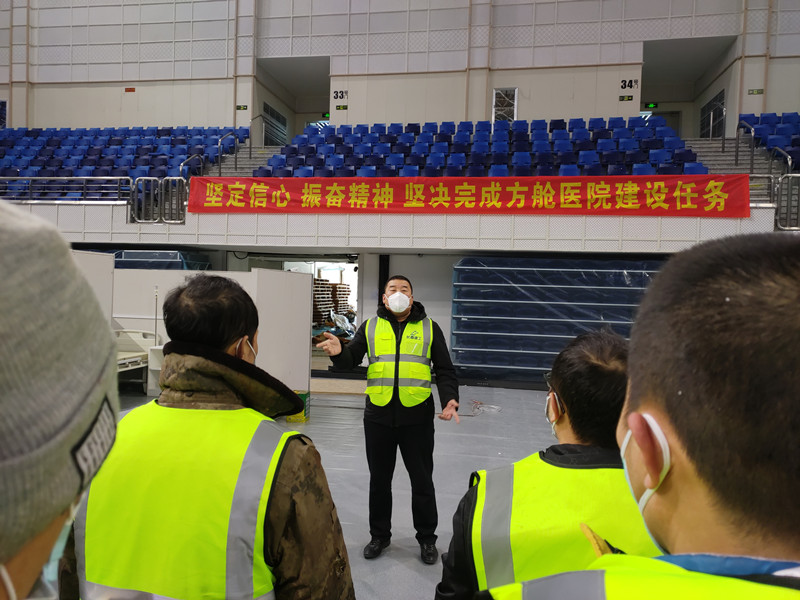 闻令而动,听令而行。13日晚,老党员陈喜明被任命为项目经理,要力争在最短的时间内将1.5万平方米的主馆及训练馆改造成配置数百张床位的临时收治场所。“我们的任务包括建筑内部分隔、污水处理设施、建筑内部设施设备、人员物资进出通道、卫生防疫、安全防护等。”陈喜明告诉记者。日以继夜,连续鏖战,不计代价,与时间赛跑。3小时完成场馆地面保护工程;12小时完成数百个床位的病房隔断施工;15日凌晨开始协助组装床位;外网施工、水电配合等工作同步进行。紧锣密鼓下的流水作业,使原本至少需要10天完成的工程实现全面提速。“大家都自告奋勇顶上,谁困了就倒在墙边眯一会,到点了有人去叫醒。”唯有憋住一股劲儿,倒排工期、争分夺秒、齐心协力,才能迎难而上。