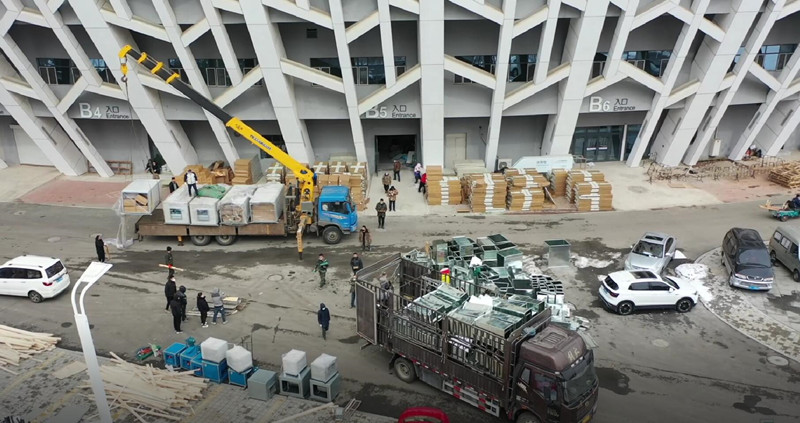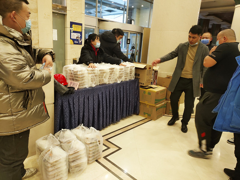 当得知隔离点场所需要垃圾回收站,4小时后7个3*6米集装箱到位;当隔离点改造现场需要穿衣镜的成品已采购不到,立即调来原材料进行现场制作;实业集团的管理人员、市场营销人员吃住在工地,冒着风雪昼夜接运物料,经常到黎明还没来得及休息,随即又投入到工作当中。