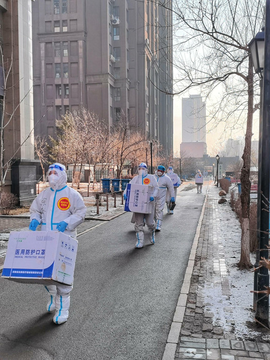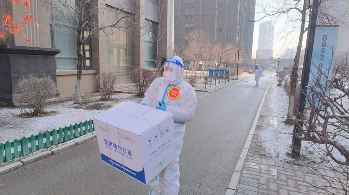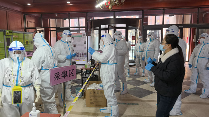 上门派发自检测试剂盒,志愿者们背着一个个大袋子挨家挨户敲门派发,在工作中面对居民的质疑,他们耐心的解释。小小试剂盒,让志愿者们跑断了腿,在教老年人使用时,他们更是磨破了嘴。几栋楼下来汗水湿透了防护服里面的衣服,但他们没有退缩,一走就是好几个小时,每天工作到深夜和几万步的行走距离,志愿者们按规定时间完成了超一万份试剂盒的派发工作。每轮检测后,他们还要对上万个试管进行一一核对,发现漏检人员他们想方设法补检。