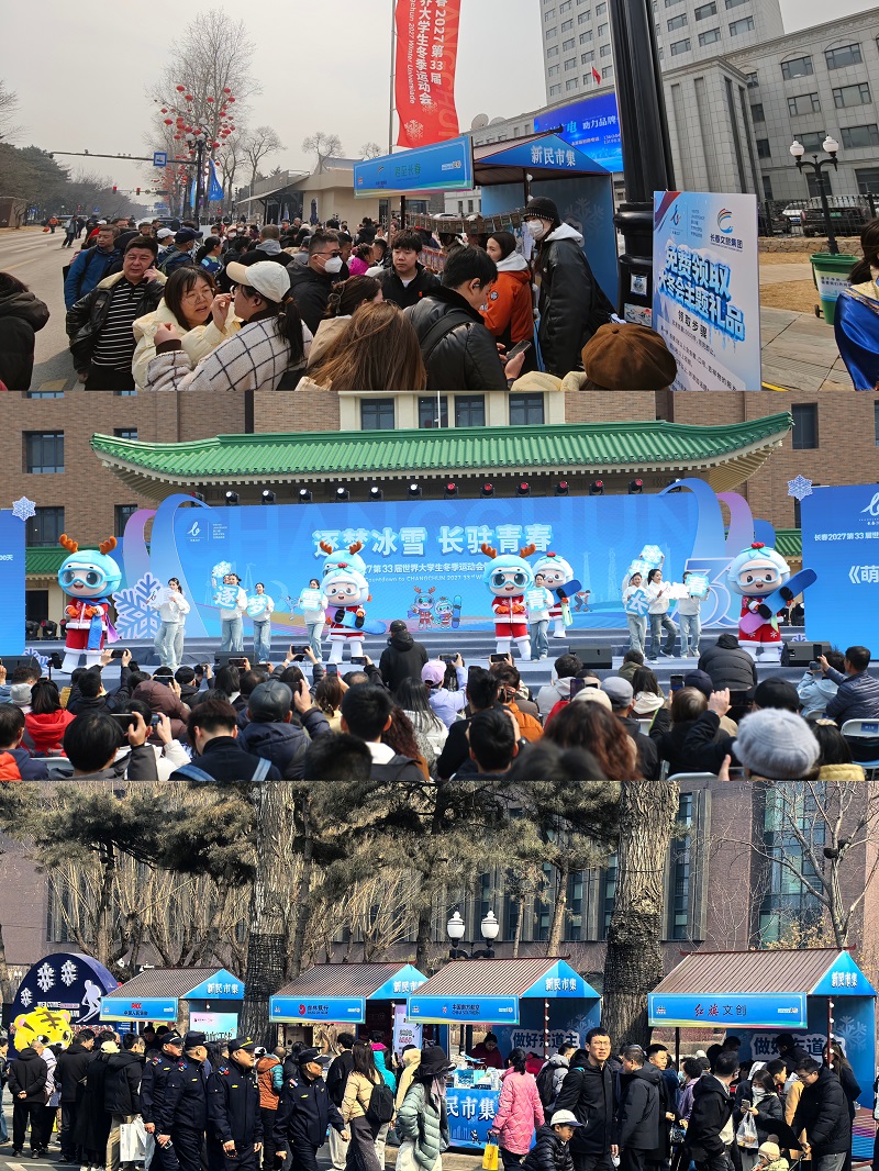 3月21日,长春新民大街人声鼎沸,长春历史文化博物馆前,长春2027第33届世界大学生冬季运动会(以下简称“长春大冬会”)倒计时300天活动精彩启幕。长春大冬会会徽“春长”、口号“逐梦冰雪,长驻青春”、吉祥物“吉冰”“吉雪”相继正式发布,为即将在2027年1月15日至25日举办的国际赛事拉开了序幕。