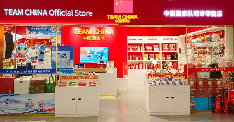 随着长春2027第33届世界大学生冬季运动会的脚步日益临近,长春的城市消费氛围愈发浓厚。 今日,记者来到位于这有山商场三楼的中国队店面——长春大冬会特许商品专营店,看到琳琅满目的赛事周边产品已全面上架,吸引众多市民驻足选购,成为传播冰雪文化、展示城市形象的新窗口。 走进专营店,醒目的“TEAM CHINA 中国队”标识与长春大冬会吉祥物吉冰、吉雪形象交相辉映。展柜中,印有赛事会徽的T恤、卫衣、帽子等服饰整齐悬挂,色彩明快的马克杯、笔记本、松花石文创摆件等小件商品错落陈列,充满设计感的吉祥物毛绒玩偶和手办更是成为“人气担当”现场电子屏循环播放赛事宣传片,营造出热烈而专业的氛围。